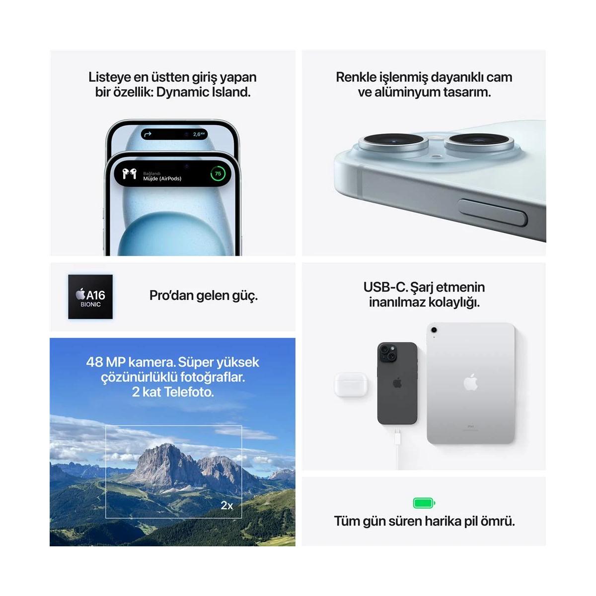iPhone 15’in fiyatları, tercih edilen depolama kapasitesine ve teknik özelliklere bağlı olarak farklılık gösterebilir. Daha fazla alan isteyen kullanıcılar, ek ücret karşılığında daha yüksek depolama seçeneklerine ulaşabilirken, temel ihtiyaçlara hitap eden 128 GB modeli daha uygun bir alternatif sunar. Eğer geniş depolama alanına ihtiyaç duyuyorsanız, 256 GB versiyonu daha fazla oyun, medya dosyası ve büyük verileri saklamak için ideal bir seçenek olabilir. Yeni iPhone 15 modelleri, USB-C bağlantı noktası gibi modern yeniliklerle donatılmış olup, A16 çip seti sayesinde yüksek performans sunar. Gelişmiş kamera teknolojisi ve yüksek çözünürlüklü ekranı ile hem fotoğraf ve video meraklılarını hem de günlük kullanımda üst düzey deneyim arayanları memnun edecek bir tasarıma sahiptir. Apple’ın bu yeni serisi, hem şık hem de güçlü bir cihaz arayanlar için mükemmel bir tercih olabilir. iPhone 15’in Pro ve Pro Max modellerinde ise 1 TB kadar depolama seçenekleri ile kullanıcıya sunulmaktadır. iPhone 15, 6.1 inç Super Retina XDR ekranı ve alüminyum tasarımı ile kullanıcılar tarafından oldukça beğenilen bir model olmayı başarmıştır. Dynamic Island alanıyla birlikte ise kullanıcılara kolay erişilebilirlik imkanı sunmaktadır. 5 Çekirdekli son teknolojilerden biri olan A16 Bionic Çip ve 5 çekirdekli GPU’ya sahip olması cihazın performansını arttırmaktadır. iPhone 15, diğer tüm Apple cep telefonlarında olduğu gibi kullanıcıları oldukça memnun etmeyi başaran bir kamera sistemine sahiptir. Geliştirilmiş çift kamera sistemi 48 MP ana kamera ve ultra geniş açısıyla birlikte kullanıcıların fotoğraf ve video konusunda olduk.a etkileyici bir performans sunmaktadır. Çözünürlük açısından yüksek çözünürlük sağlayan 24 MP ve 48 MP olarak kullanıcıyı memnun etmektedir. Süper odaklı ve yeni nesil portreler ile optik zoom ile her açıdan fotoğraflarını destekleyen bir sisteme sahiptir. Bir önceki nesillere göre daha da geliştirilmiş olan iPhone 15, piyasaya çıktığı ilk günden beri kullanıcıların beğenisini toplamayı başarmış bir Apple cihazıdır.